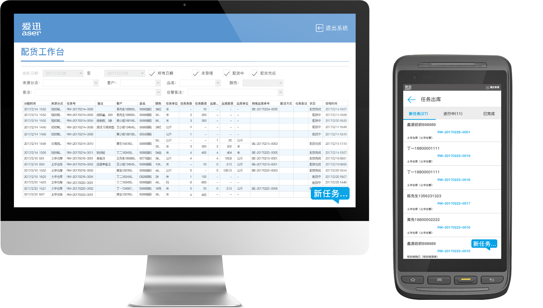 配货工作台, 任务提醒。手握PDA,实时调配。